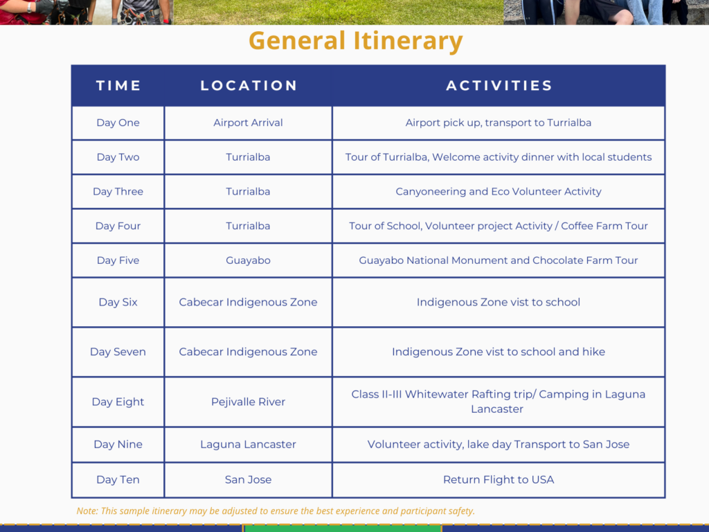 Connect Costa Rica turns online cultural connections into a real-world experience through a thoughtfully guided 10-day program in Costa Rica. Students build meaningful friendships with local peers while exploring culture, service, and adventure in a safe, educator-led environment designed to support growth, learning, and global citizenship.